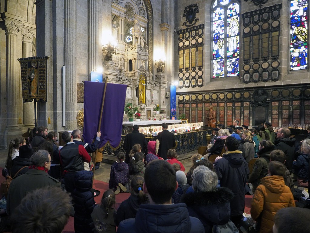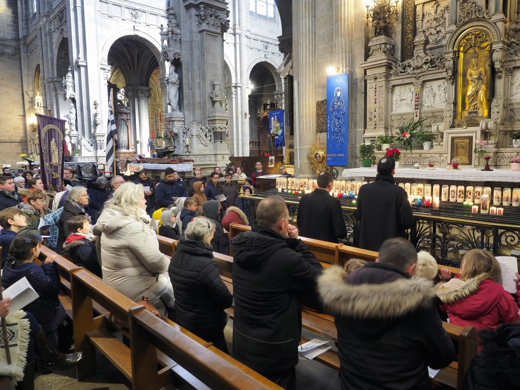 Ce pèlerinage fut, de l’avis de tous, un grand succès. Vous avez répondu présents en bon nombre, et nous avons imploré Ste Anne pour toutes nos intentions : nos chapelles, nos prêtres, nos religieux et religieuses, nos familles, nos enfants, nos écoles, nos malades, la conversion des pécheurs, etc, et bien sûr que le Bon Dieu nous donne un saint Pape et un saint Roi ! Nul doute que ce pèlerinage est déjà et sera encore la source de beaucoup de grâces, que notre bonne sainte Anne nous prodigue à foison. Que sainte Anne soit aimée et glorifiée comme elle le mérite !
