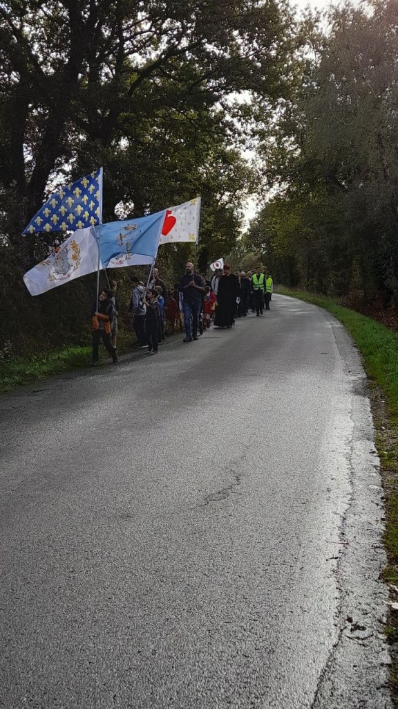 Après la messe à 8h30 dans la chapelle Notre-Dame des Dons, le départ a lieu à 10h00 et la journée de marche permet de réciter le Rosaire et d’implorer le ciel pour les trois grandes intentions actuelles: l’Église, la France et nos familles.