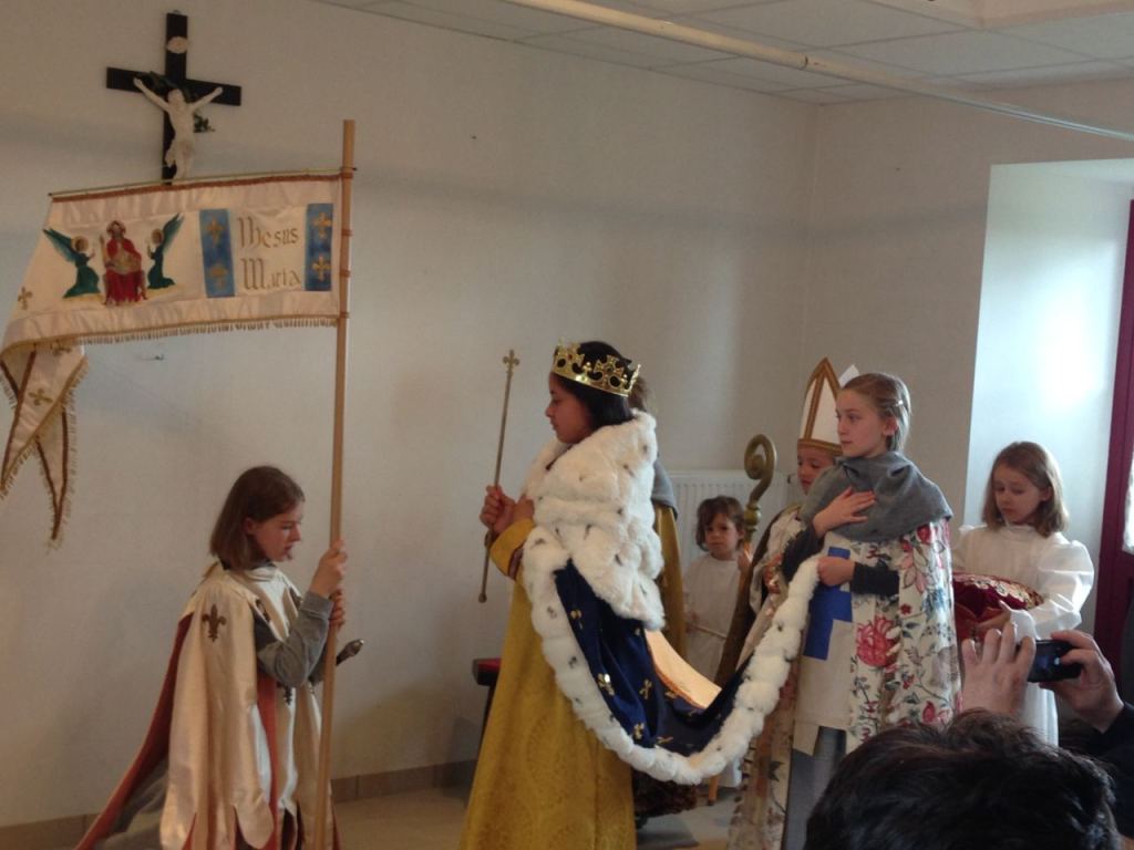Pour répondre à l’apostasie générale des nations, le Pape Pie XI institua la fête solennelle du Christ-Roi qui se célèbre le dernier dimanche d’octobre. C’est le jour de la fête patronale et paroissiale de notre chapelle principale de Nantes où l’on honore le Christ, Roi de France, saint Louis, son lieutenant, modèle du roi très chrétien et sainte Jeanne d’Arc, qui sauva notre royaume.