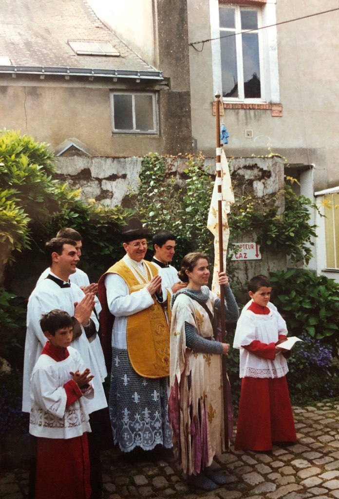 En 1926, alors que le maire de Nantes, M. Paul Bellamy, avait interdit les manifestations publiques religieuses, 25 000 nantais se mobilisèrent pour répondre à l’appel de leur évêque et témoigner de leur foi envers la Sainte Eucharistie. Nous devons de la même façon continuer dans les rues de Nantes à montrer au monde notre foi et notre attachement au trésor le plus précieux que nous pouvons posséder: le Très Saint Sacrement. Puissent s’appliquer à nous ces mots de Monseigneur Le Fer de la Motte remerciant ses diocésains après cette démonstration de force: « Nantais, vous avez voulu affirmer les droits de Dieu et revendiquez vos libertés saintes. Jamais chez nous procession ne détermina une telle levée d’hommes et ne suscita pareil enthousiasme. Là ne s’arrêtera pas votre action. Avec une ténacité bretonne vous saurez défendre et propager votre foi… La France elle-même regarde avec admiration vos cortèges invincibles! »