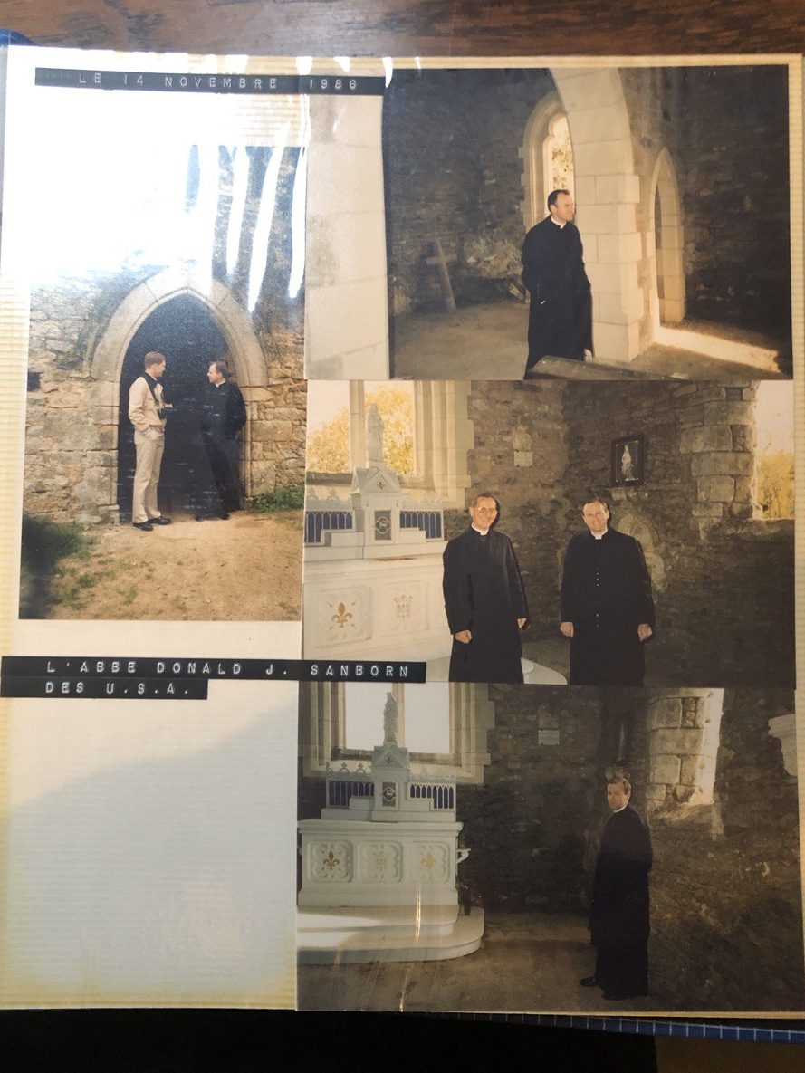 L’abbé Sanborn visite la chapelle de Notre-Dame des Dons en reconstruction (1986).