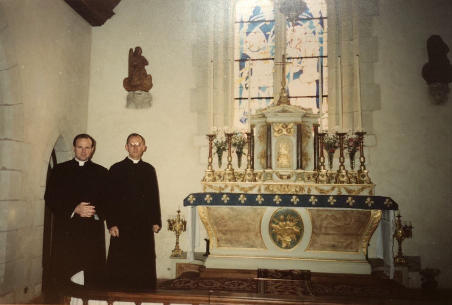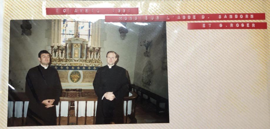Les abbés Guépin, Sanborn, et Roger à la chapelle Notre-Dame des Dons (1991)